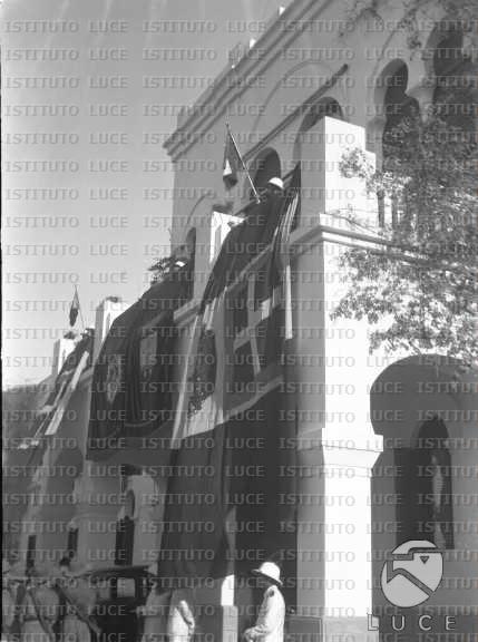 Bandiere sul palazzo del Governatore in attesa dell'arrivo del ministro Lessona
