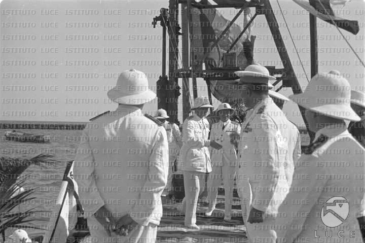 Il ministro Lessona accolto dalle autorità politiche e militari sulla banchina del porto