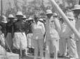Il ministro Lessona pronuncia un discorso davanti alla villa vicereale di Mogadiscio